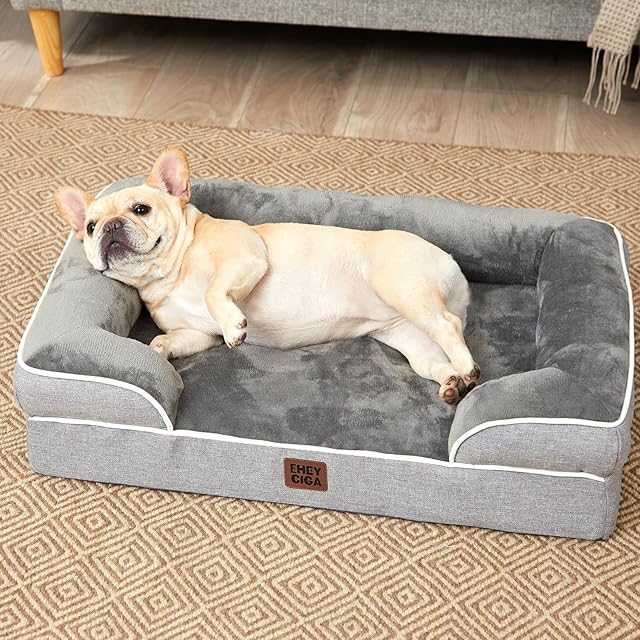 メモリーフォーム採用:EHEYCIGA犬ベッドは、メモリーフォームと卵型フォームを組み合わせて設計されており、体を均一に支えて体圧を分散します。柔軟性とサポート力のバランスに優れ、特にシニア犬の関節への負担軽減に効果的です。