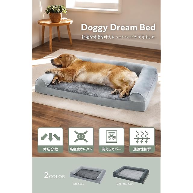 【快適な睡眠をサポートする犬用ベッド】ドギードリームベッドは、体圧分散構造と通気性で愛犬の関節や骨への負担を軽減し、質の高い睡眠環境を提供します。ふわふわ素材のマットと洗えるカバーで清潔さを保ちやすく、滑り止め付きで安定感も抜群。耐久性に優れ、小型犬から大型犬まで対応。冬に適した保温性とおしゃれなデザインで、愛犬の快適さと飼い主の満足を両立した犬用ベッドです。