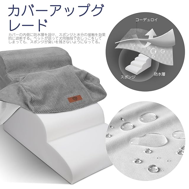 安定性が優れる:ステップの底に滑り止めが付いていて、ステップが飛び乗ってもずれないので安全です。カバーはコーデュロイの材質で、柔らかくて滑りにくい、爪も引っ掛かないので、ペットがステップで滑ったり転んだりはしません。より安心に使えます。カバー取り外し可能で、洗濯機で洗えるのでとても便利です。