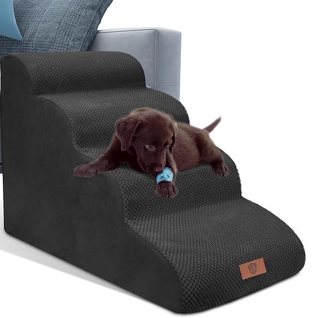 Masthome 犬 階段 犬スロープ階段 ドッグステップ 犬用ステップ 4段 高さ51cm 段差解消 ペット用 ステップ 階段 滑り止め 犬用 4段踏み台 安全 カバー取り外し可能 ペット用品 小型犬 室内犬 高齢犬 猫犬に適用 ブラウン グレー ホワイト ブラック ブルー