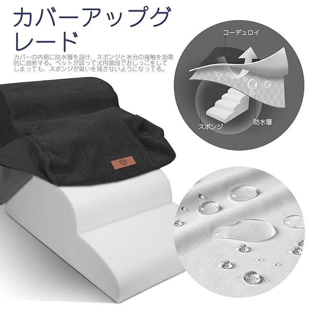 安定性が優れる:ステップの底に滑り止めが付いていて、ステップが飛び乗ってもずれないので安全です。カバーはコーデュロイの材質で、柔らかくて滑りにくい、爪も引っ掛かないので、ペットがステップで滑ったり転んだりはしません。より安心に使えます。カバー取り外し可能で、洗濯機で洗えるのでとても便利です。