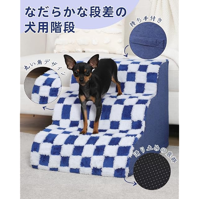 【取り外し可能カバー】この犬階段のカバーには隠しU字ファスナーが付き、滑らかで耐久性があり、カバーを簡単に取り外すことができ、手洗いも洗濯機洗いもOK、非常に便利です。キレイな市松模様のデザインで、4色の中からお好きなカラーを選べます。