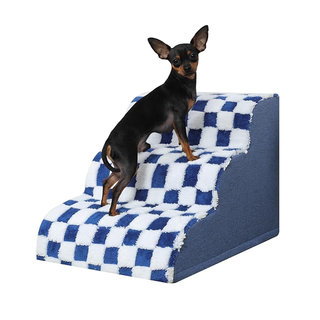 KSIIA 犬 階段 ステップ 高密度 ペット 階段 犬 ステップ 洗える 犬階段 滑り止め 犬用階段 取り外せるカバー ドッグステップ 安定性 3段 小型犬 高齢犬 57×40×40cm ブルー