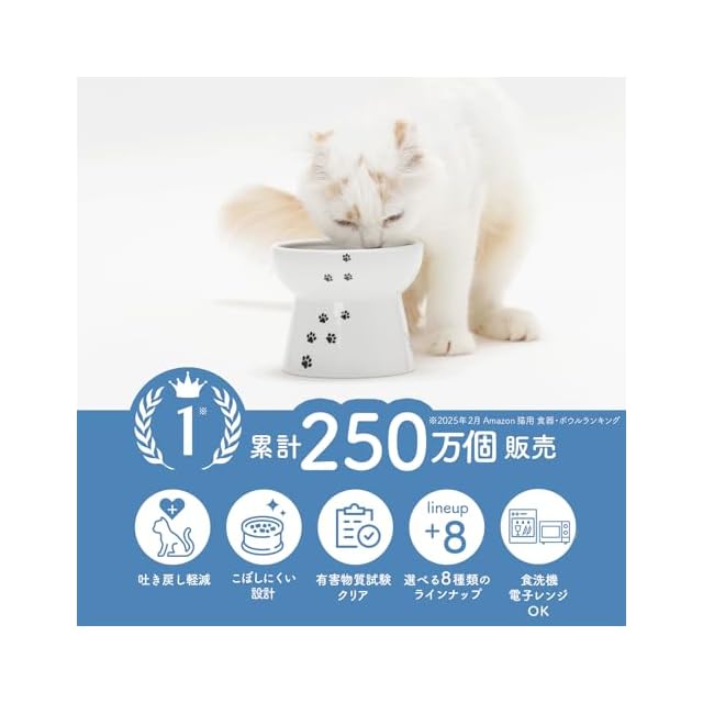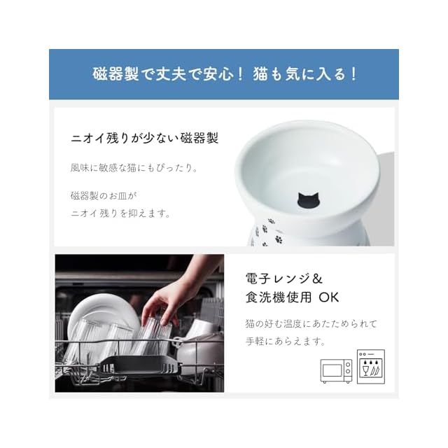 商品名:猫壱(necoichi)ハッピーダイニング 猫用 脚付フードボウル L 猫柄 吐き戻し軽減 電子レンジ&食器洗浄機対応