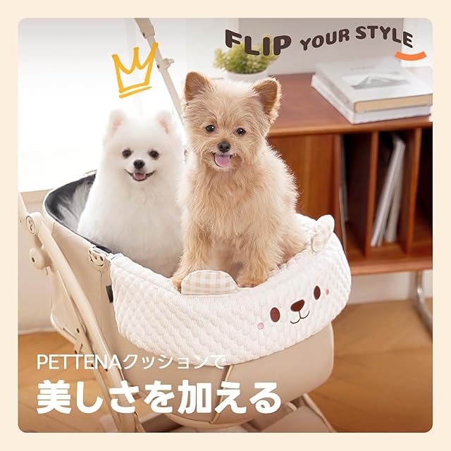 商品名:【カイロポケット付き・秋冬対応】PETTENA ペットカート用クッション 2点セット 両面使用可能 IPX4防水 あごのせ枕付き 関節サポート&犬体工学設計 丸洗いOKふわふわベッド 小型犬・中型犬用