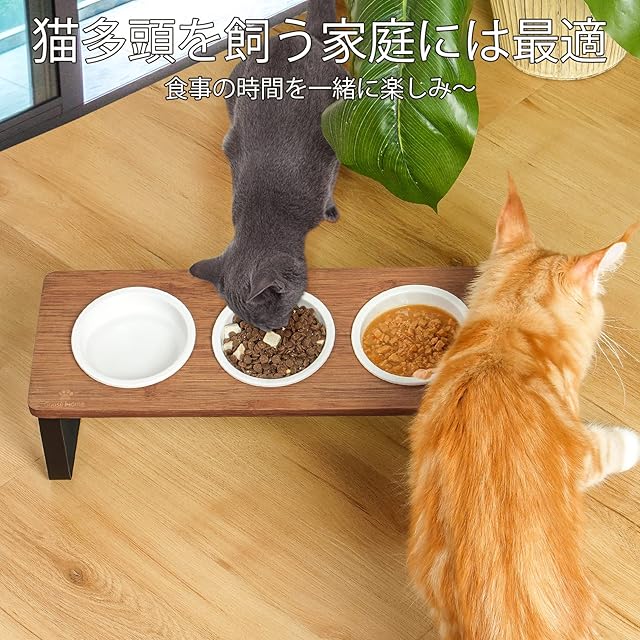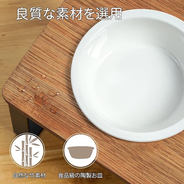 【安心安全な高品質素材】食器台は、耐久性のある天然の竹素材で作られ、菌の繁殖には抑える効果があります。ボウルは高品質のセラミック素材でできており、プラスチック製より小さいな傷をつけにくく、猫ニキビの防止にも役たつ~