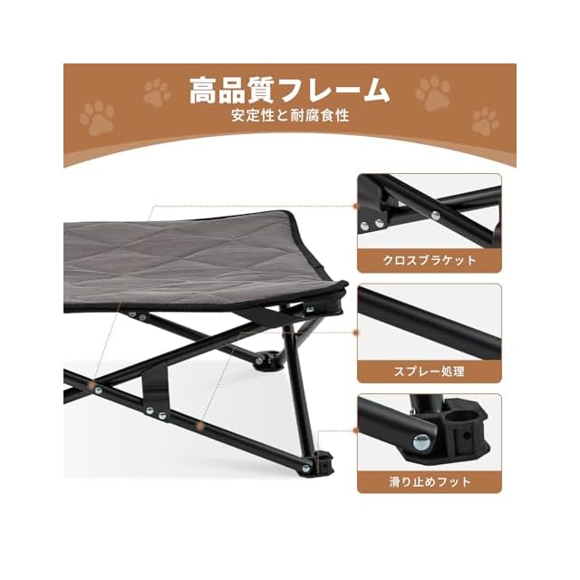 商品名:KingCamp ドッグコット 犬用ベッド ペットベッド アウトドア 折りたたみ 洗える クッション付き 地面から離れ キャンプ 中型犬用 M