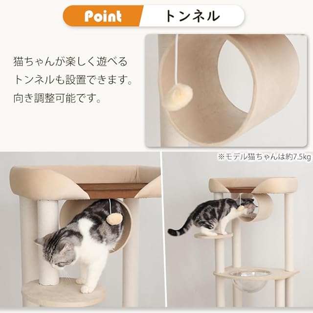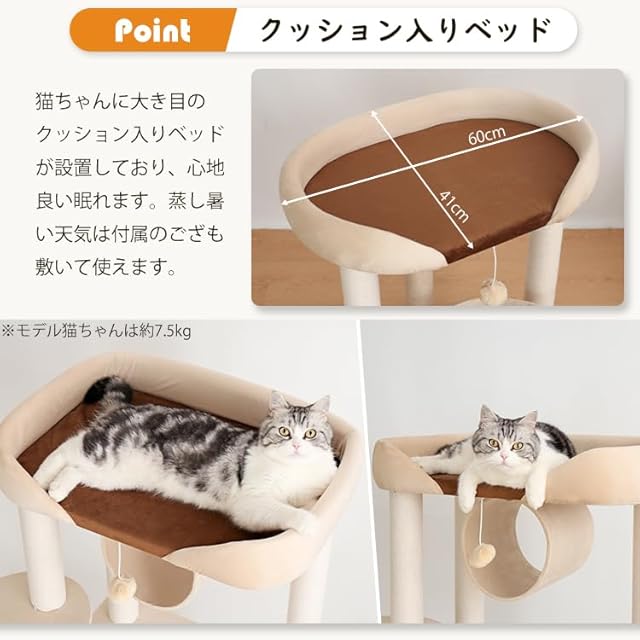 商品名:LULUCAT キャットタワー クッション入りベッド 【販売元LULUCAT OFFICIAL】巨大土台 据え置き おしゃれ 多頭飼い コンパクト 宇宙船 クリアボウル シニア猫 大型猫 安定感 クッション入りベッド 展望台 猫ベッド 運動不足解消 省スペース スリム 爪とぎポール コットン紐 遊び場 (高さ134cmタイプ)