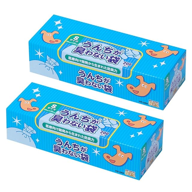 驚異の防臭袋 BOS (ボス) うんちが臭わない袋 ペット用 2個セット うんち 処理袋 【袋カラー:ブルー】 (Sサイズ 200枚入)【販売元をご確認ください 中身を箱から出して出荷されるケースが発生しています】