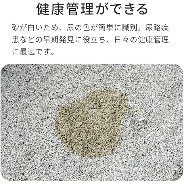 ✅砂埃に含まれる微小な粒子は、アレルギー反応や呼吸器のトラブルにつながることも... クリスタルブレンドサンドは、これらの粉塵を最小限に抑え、猫と飼い主さんの健康に配慮した優しい猫砂です。 また、砂が白い為、尿の色を簡単に識別できます。尿路疾患などの早期発見に役立ち、日々の健康管理に最適です。