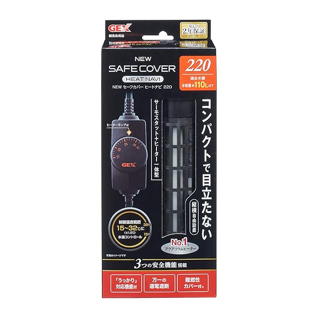 商品名:ジェックス GEX AQUA HEATER NEW セーフカバー ヒートナビ 220 サーモスタット+ヒーター一体型 縦横設置 安全機能付 SP規格適合 約110L以下の水槽用 220W