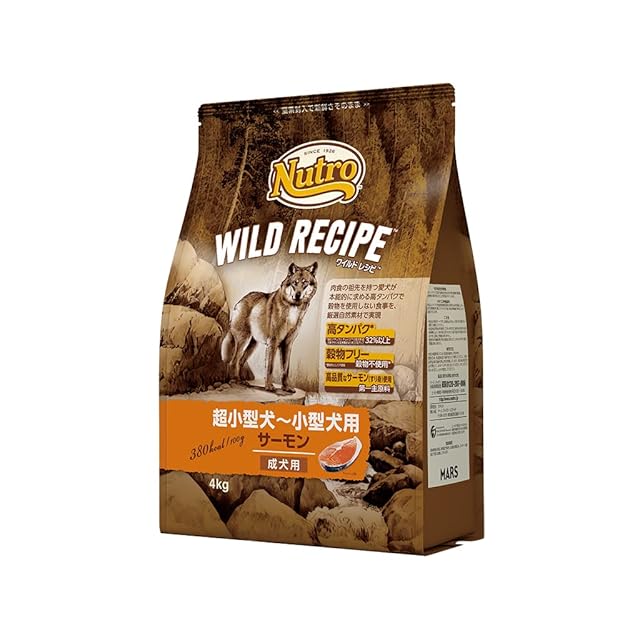 商品名:Nutro ワイルドレシピ 超小型犬~小型犬用 グレインフリー 成犬用 サーモン 4kg ドライフード 総合栄養食 ドッグフード 犬 穀物フリー 香料・着色料 無添加 ニュートロ