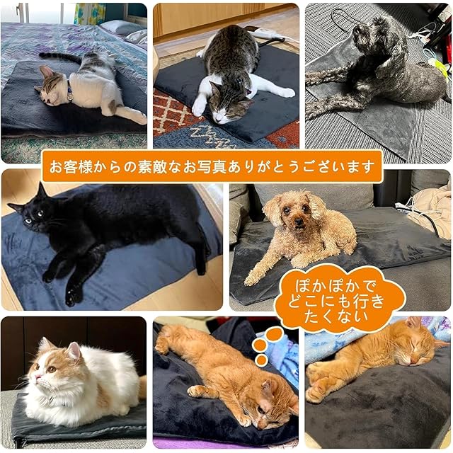 【過熱保護・防水難燃・厚手・省エネ】温度センサーを内蔵し、過熱や漏電などの異常が発生した場合は自動的に電源が切れます、ペットの安全を確保します。ご安心に使用ください。このヒーターは、厚手のスポンジと難燃性のコットンを内部に豊富に使用しており、表面には防水難燃性の人造皮革を採用しています。柔軟性と快適性を確保すると同時に、安全性も確保されています。一時間あたりの消費電力35ワット/電気代0.5円、省エネで長い時間につけっぱなしでも大丈夫です。