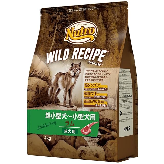 商品名:Nutro ワイルドレシピ 超小型犬~小型犬用 グレインフリー 成犬用 ラム 4kg ドライフード 総合栄養食 ドッグフード 犬 穀物フリー 香料・着色料 無添加 ニュートロ
