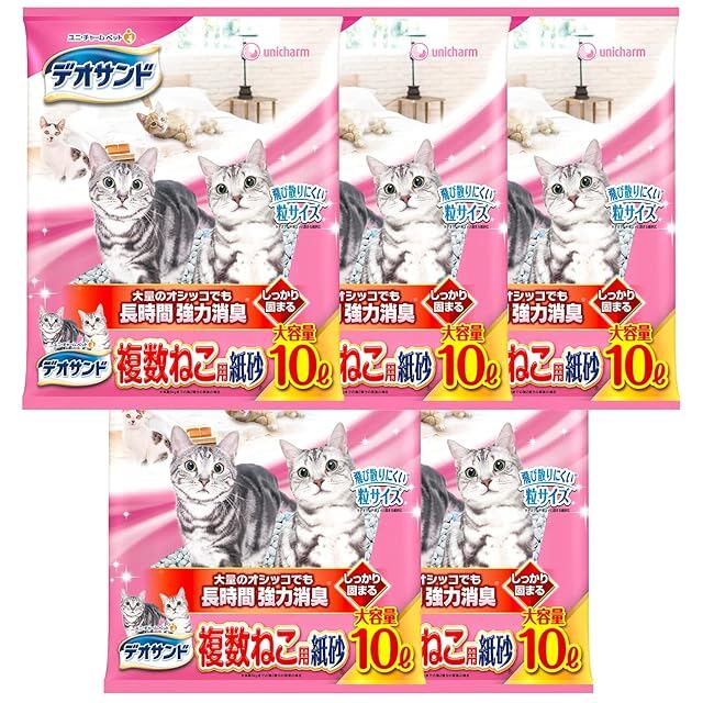 【しっかり固まる】デオサンド 複数ねこ用紙砂 50L(10L×5個)[ 猫砂 紙タイプ ]【強力消臭】