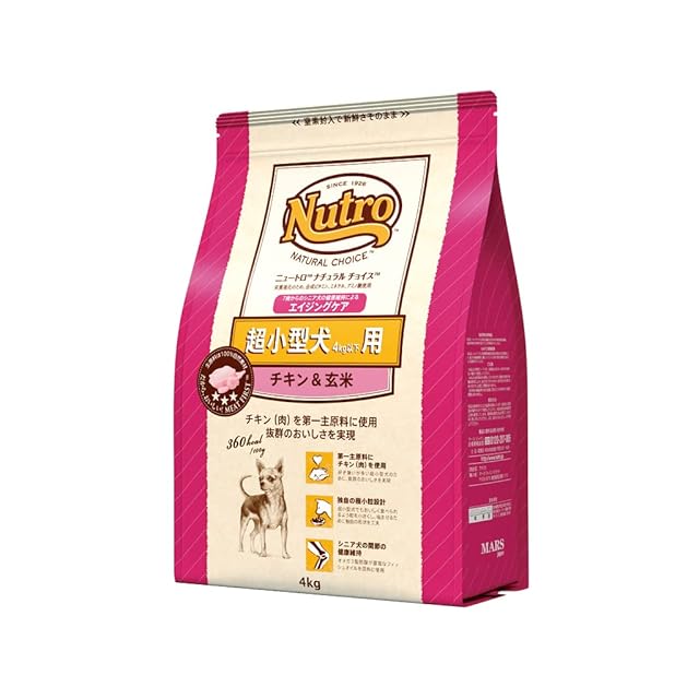 Nutro ナチュラルチョイス シニア犬用 超小型犬4kg以下用 チキン&玄米 4kg ドライフード 極小粒 総合栄養食 エイジングケア ドッグフード 犬 自然素材 香料・着色料 無添加 ニュートロ