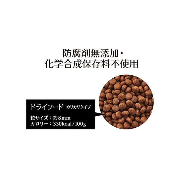 主原料は骨・皮・内臓を含まない国産ビーフ(牛肉)を使用しています。 防腐剤(化学合成保存料)や合成酸化防止剤・着色料・香料は一切不使用です。【無添加】 おなかの健康に配慮した乳酸菌配合。 関節の健康維持にグルコサミン・コンドロイチン配合。 皮膚・毛ヅヤの健康維持にオメガ3,6脂肪酸をバランスよく配合。【健康維持】 国産のお肉を一番多く使っており【食いつき抜群】、衛生管理の徹底した国内工場で生産【国産】されるペットフードだから、大切な家族”ワンちゃん”に安心して食べさせられます。