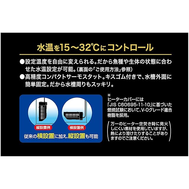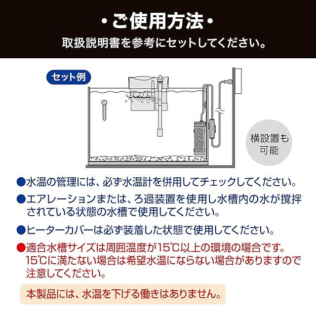 【安全カバー付き】難燃性樹脂を使用したヒーターカバーがついているので、人にも、魚にも安全です。