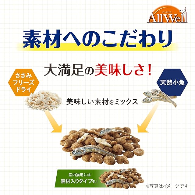 商品名:[吐き戻し軽減] All Well(オールウェル) キャットフード ドライ [室内猫用] 贅沢素材入り フィッシュ 2.4kg【国産】