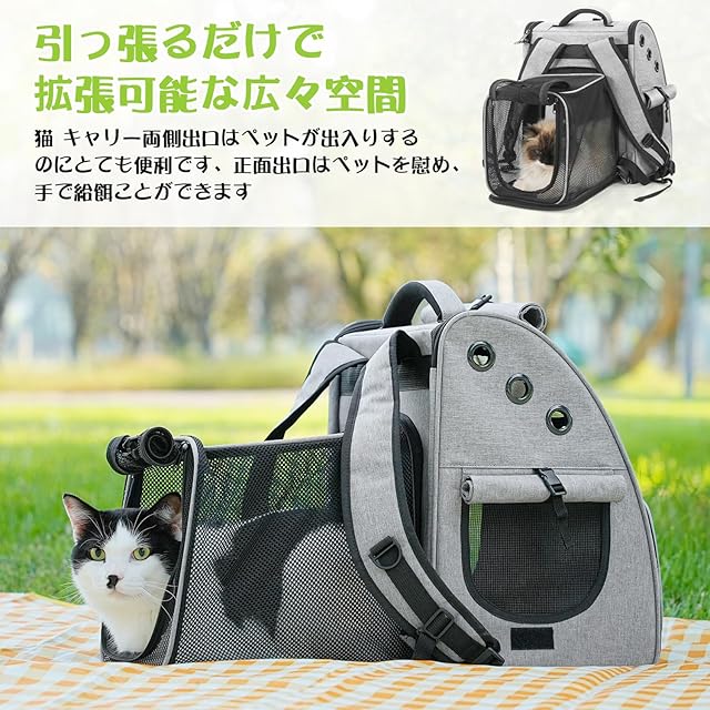 Tresbro 拡張可能な 犬 リュック 猫【新色追加・最新型3in1】 ペットキャリー ロック式ダブルファスナー・カーテン付きの ペットリュック 小型犬 旅行/通院/災害避難用 猫きゃりーバッグ 人気 ハウス型 グレー