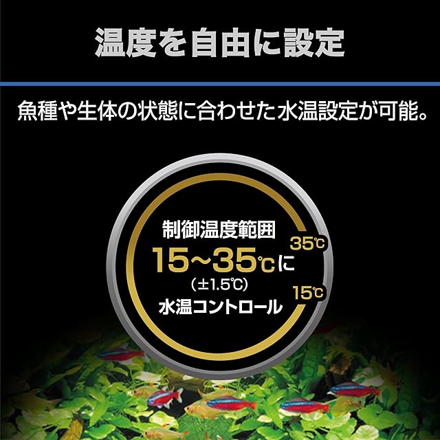 【温度制御範囲】水温を15~35度にコントロールできるサーモスタットと300Wヒーター。
