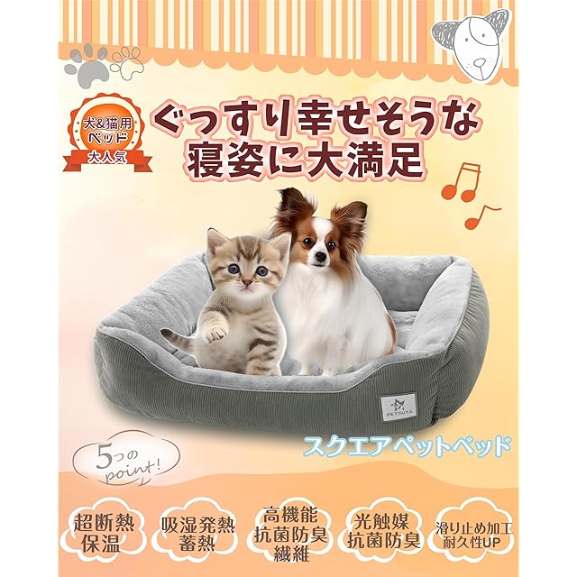 商品名:PETSUTA 猫 犬 ベッド 冬 極上暖感 【宇宙服エアロゲル+高機能中わた】 ペットベッド 冬 犬用ベッド 猫用ベッド 【天然吸湿発熱+アルミシート】 多層構造 ふわふわ 暖かい 猫 犬 クッション 光触媒加工 洗える ペットクッション ダブル抗菌防臭 ダブル静電気防止 滑り止め付き(グレー・ 44x58x18cm)