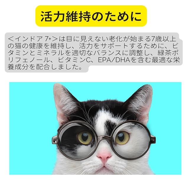 健康サポート: 中高齢猫の健康的な体重維持と活力をサポートする成分を含有