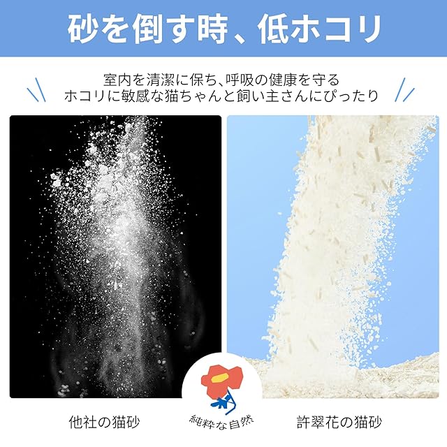 【ほこりが少ない】砂を注ぐときに舞い上がりにくく、呼吸の健康を守り、敏感な猫ちゃんと飼い主にぴったり