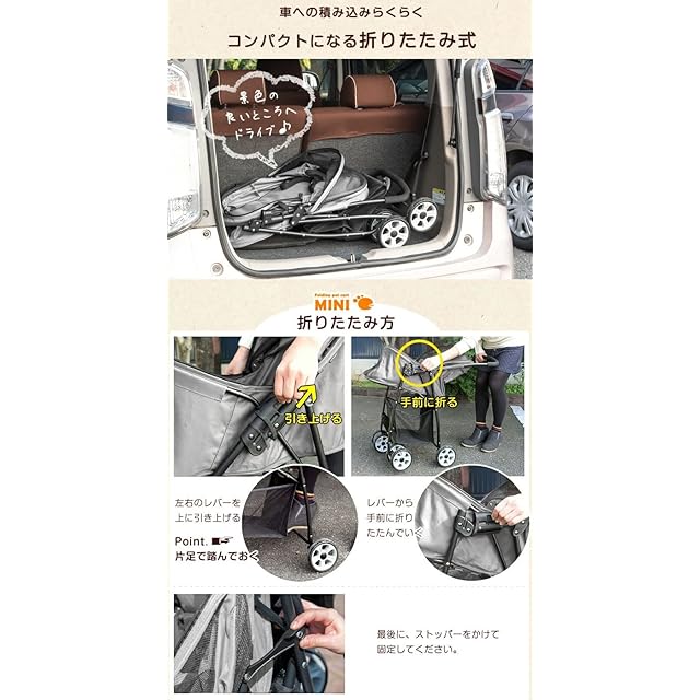 【スタッフおすすめポイント】<br> ・安定の4輪カート *G-pet MINI*<br> ・折りたたみ式<br> ・手荷物などが入るカート下収納カゴ<br> ・2匹で仲良くお出かけできるリード2本付き<br> ・前面、後ろ、真上からも様子が見れるメッシュ窓<br> ・後輪2つにはストッパーを装備<br> ・座面は取り外して水洗いOK