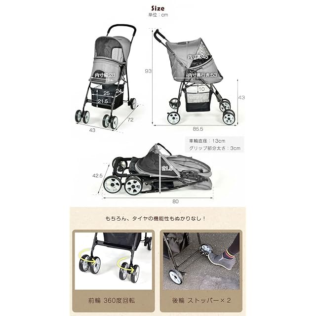 【サイズ】外寸:幅42.5×奥行き85.5×高さ93cm【折りたたみ時】幅42.5×奥行き21.5×高さ80cm / リード長:24~46cm