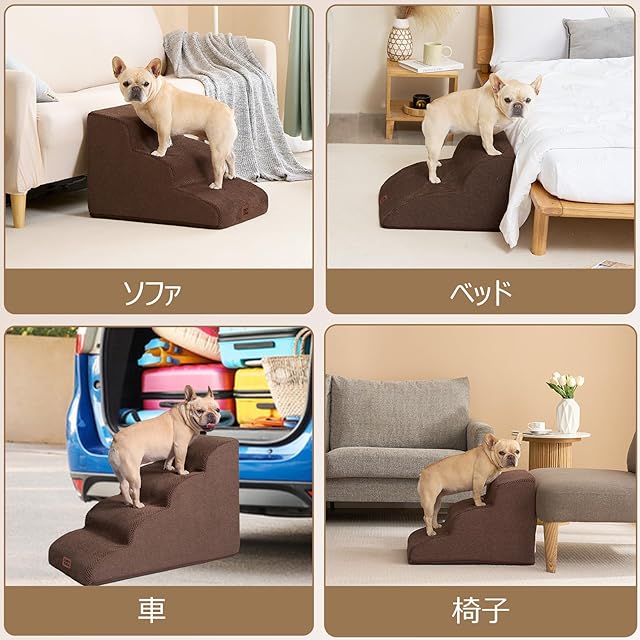 商品名:EHEYCIGA 犬 階段 ステップ ペット階段 ドッグステップ 犬 スロープ 高密度 滑り止め付き 安定性 カバー取り外し可能 洗える 小型犬適用(3段,ブラウン)