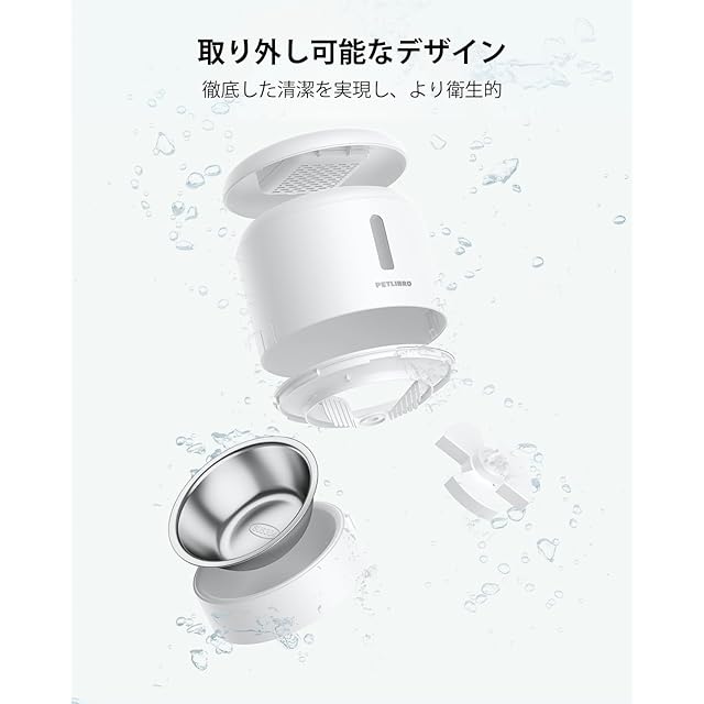 【水洗い可 清潔衛⽣】:食品級ABS材質採用で、丈夫で耐久性も良いです。ステンレス製フードボウルとボウルベースは取り外してお手入れしやすいので、衛生的に使えます。そして、蓋、フードタンク、餌 ベースの取付/分解/水洗いは非常にやすいです。また本体は水洗いできませんので、固く絞った布で拭いてください。