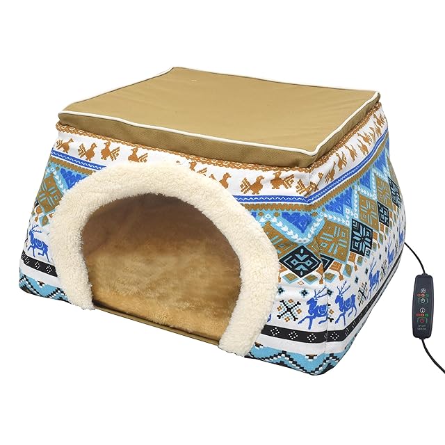 プラタ ペット用品 ペット ペットベッド こたつ ベッド ハウス ヒーター 付き 犬 猫 キャットハウス クッション 防寒対策 暖かい 【 ブルー 】