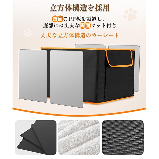 【高耐久600Dオックスフォード布&PU防水加工】 傷つきにくく、お手入れ簡単、600Dオックスフォード布にPU防水加工を施し、汚れや水に強いので、いつでも清潔に保てます。当社の犬 ドライブシートがあれば、アクティブな愛犬にも心配しません。