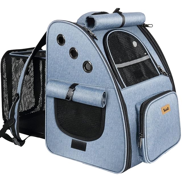 商品名:Tresbro 拡張可能な 犬 リュック 猫【最新型3in1】 キャリー ロック式ダブルファスナー・カーテン付きの ペットリュック 小型犬 旅行/通院/災害避難用 猫きゃりーバッグ 人気 ハウス型 ブルー