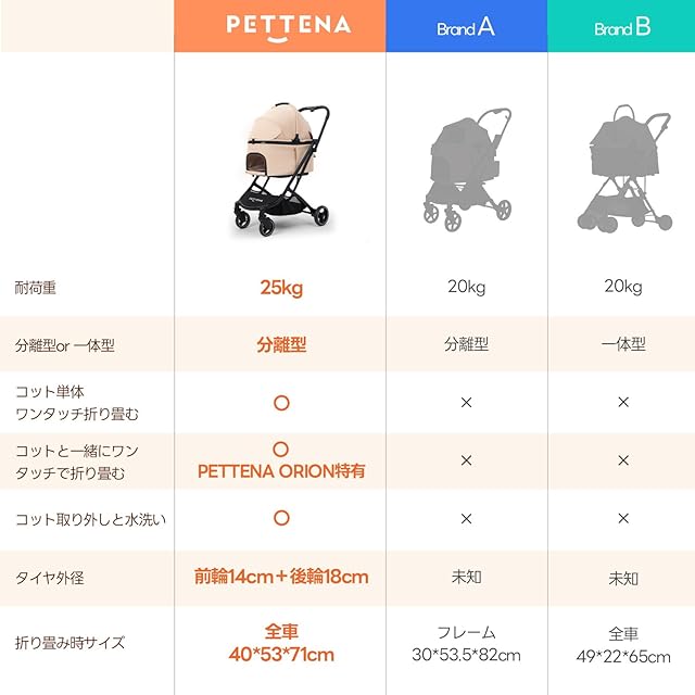 商品名:【最新の1秒コット付折り畳み】PETTENA ペットカート 小型犬 分離型 犬カート 耐荷重25kg 「X-FOLD」技術 キャリーコット付ワンタッチ折り畳み 自立可能 軽量 犬バギー お出かけ用 猫 犬ベビーカー PETTENA ORION