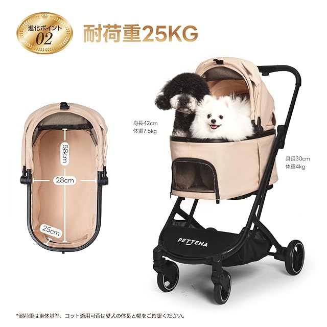 【最新の1秒コット付折り畳み】PETTENA ペットカート 小型犬 分離型 犬カート 耐荷重25kg 「X-FOLD」技術 キャリーコット付ワンタッチ折り畳み 自立可能 軽量 犬バギー お出かけ用 猫 犬ベビーカー PETTENA ORION