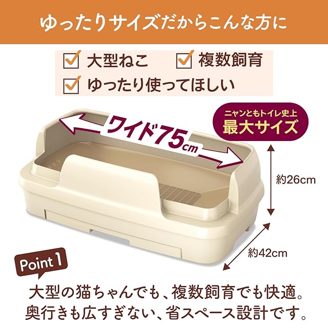 商品名:ニャンとも清潔トイレ 猫 トイレ 大型 本体セット [約1か月分 猫砂・シート付] のびのびリラックス ライトベージュ 複数飼育 大きめ ワイド 多頭 猫用 システムトイレ