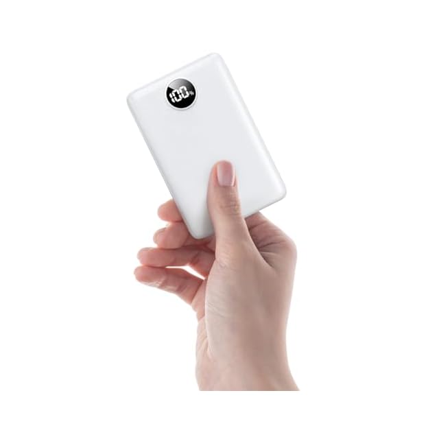 【軽量化と美観化の一体設計·持ち運び簡単】本体にLED液晶ディスプレイを搭載しており、残量を1%刻みで表示できるので、ボタンを押すと電池残量が一目で確認できます。充電のタイミングを把握するのに便利で、使うときにバッテリーの残量が無いといった不安を解消します。シンプルで男女問わず、誰でも使いやすいデザイン。実用性にも優れているので、友人や家族へのプレゼントにも喜ばれるでしょう。又は、厚さわずか1.6cm、縦10.6cm×幅9.6cmの超薄型、スマホと重ねて持っても負担にならないほどコンパクトで、サコッシュやハンドバッグなど小さなカバンにも仕舞いやすいサイズです。重量も約170gと軽量なので、持ち運びの際に負担を感じることはほとんどないでしょう。豊富な機能に加え、本体表面には傷がつきにくい「テクスチャ加工」が施されており、携帯電話と一緒に使用しても滑りや損傷からデバイスを保護できます。持ち運びやすく機能性も豊富で、スマホ用はもちろんイヤホンのモバイルバッテリーがほしい人にもおすすめの製品です。