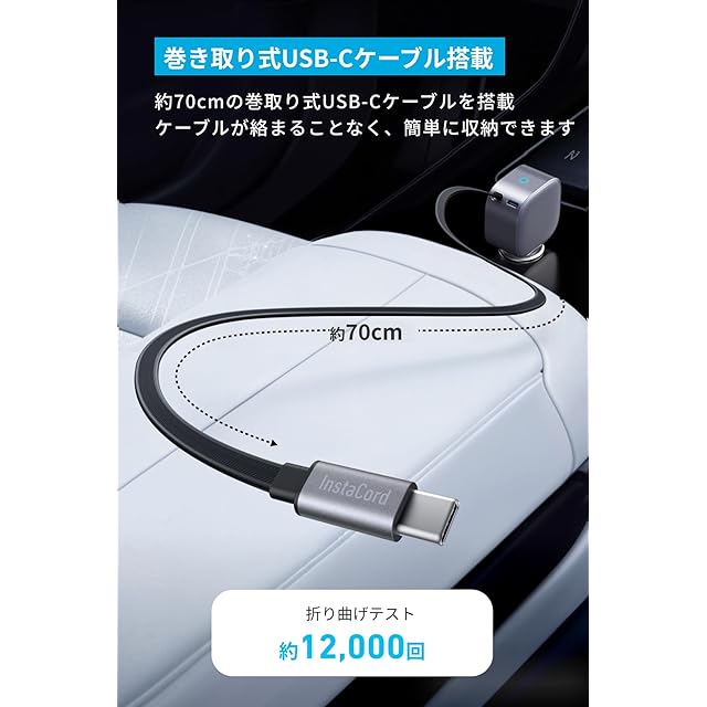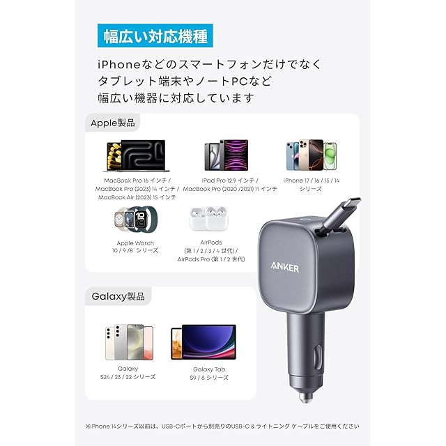商品名:Anker Nano Car Charger (75W, 巻取り式 USB-Cケーブル) iPhone 17 / 17 Pro / 17 Pro Max Galaxy Android スマートフォン ノートPC iPad 各種 その他機器対応