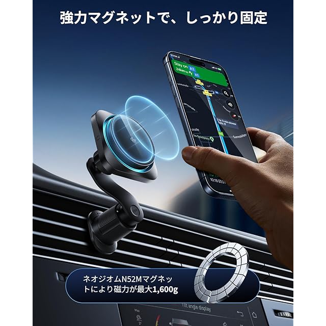 【強力なマグネットロック】:強力なN52磁石により、スマホをしっかり固定。デコボコした悪路でも揺るがない安定性を実現します。公式MagSafeケースまたはESR磁気ケースと併用することで、最高のパフォーマンスが体験できます。
