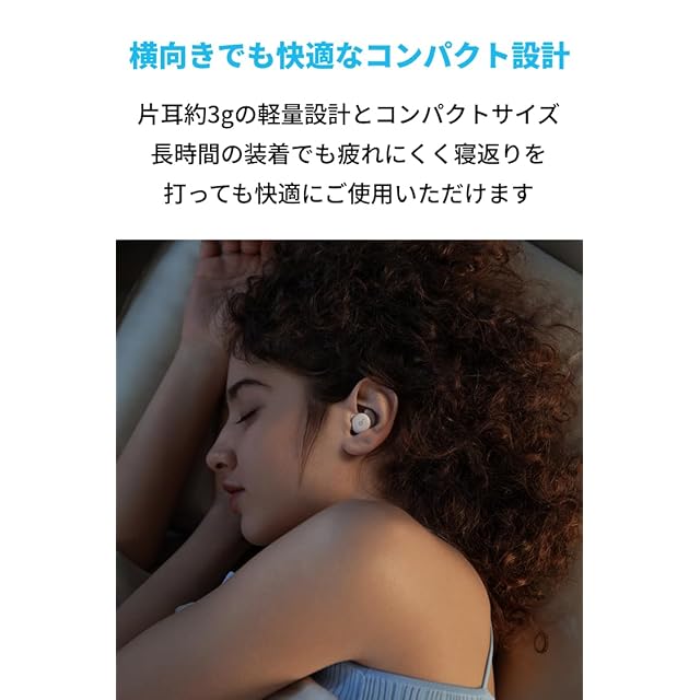 片耳約3.0gの超軽量設計:着けていることを忘れるほどの軽さを実現。Anker独自の2層構造イヤーチップにより圧迫感が少なく、耳に優しくフィットする快適なつけ心地を実現。