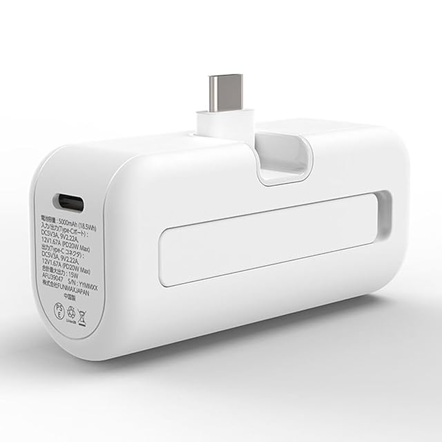 ※ご購入前に、必ずお客さま自身で対応機種をご確認ください。<br> 「 ケーブルレスポケットチャージャー01M 」の対応機種以外では、ご利用いただけません。<br><br>【商品の特徴】<br><br>・これ一つで快適スマホ充電<br> スマホに挿すだけで、充電可能。ケーブルを持ち歩く必要がなく、手軽に充電できます。<br><br>・直挿しでスマホと一体に<br> 充電中にバッテリーとケーブルを気にする必要がなく、片手で操作できます。<br><br>・持ち運びに最適な手のひらサイズ<br> 重さはわずか100g!小さなバッグにもすっぽり収まる超コンパクトサイズです。<br><br>・充電中でも見た目すっきり<br> スマホの幅に合わせたスリムなデザインを実現。充電中も邪魔になりません。<br><br>・折りたたみ式コネクタ搭載<br> 直挿しUSB Type-Cコネクタは使わないとき折りたためて、ポケットやポーチからも取り出しやすいスリムなスティック形状になります。<br><br>・急速充電 最大出力 PD20W<br> 従来品より約2倍※速く充電できます。「PPS(Programmable Power Supply)」機能を搭載により、機器を効率よく充電できます。<br>※2024年8月末時点(本製品と従来の12W充電器を使用しiPhone 15の充電スピード(充電量0-50%まで)比較)<br><br>・数字で電池残量を一目で確認<br><br>・2つのUSB Type-C搭載で2台同時充電が可能<br> 付属のUSBケーブルを使用し、直挿しでスマホを充電しながらイヤホンやゲーム機などを同時充電できます。<br>※USB Type-C以外の端末を充電する場合は、別途USBケーブルが必要です。<br><br>・ドコモあんしん・あんぜん設計<br> ショート対策/通信影響対策/異常検知機能/PPS機能<br><br><br>【商品の仕様】<br><br>■カラー:ホワイト<br><br>■サイズ:約W78×D37×H28mm<br><br>■重量:約100g<br><br>■入力:(USB Type-C ポート):DC5V3A/9V2.22A/12V1.67A(MAX PD20W)<br><br>■出力1:(USB Type-C ポート):DC5V3A/9V2.22A/12V1.67A(MAX PD20W)<br><br>■出力2:(USB Type-C コネクタ):DC5V3A/9V2.22A/12V1.67A(MAX PD20W)<br><br>■合計最大出力:合計最大出力(出力1+出力2):15W<br><br>■電池容量:5000mAh(18.5Wh)<br><br>■同梱品:<br>・モバイルバッテリー本体<br>・USB Type-C to Type-C ケーブル(0.3m)<br>・取扱説明書兼書