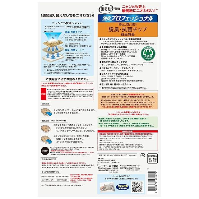 ニャンとも清潔トイレ [消臭力 監修 ニオイキャッチ成分配合] 消臭プロフェッショナル 脱臭・抗菌チップ [猫砂] 小さめの粒4.4L システムトイレ 猫用