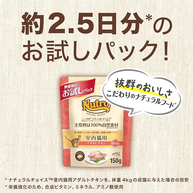 お試し品 Nutro ナチュラルチョイス 成猫用 室内猫用 アダルト チキン 150g ドライフード 総合栄養食 1歳以上 キャットフード 猫 厳選自然素材 下部尿路の健康維持 香料・着色料 無添加 ニュートロ