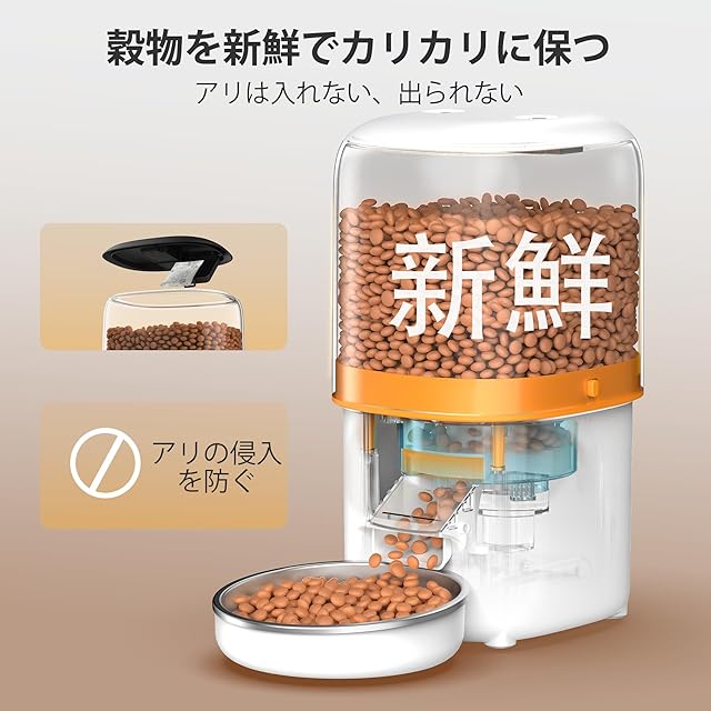 【ステンレス製皿 清潔衛⽣】:食品級ABS材質採用で、丈夫で耐久性も良いです。ペットの健康を確保するために、定期的にステンレス製のボウルを分解して掃除することもできます。そして、蓋、ボウル、餌 ベースの取付/分解/水洗いは非常にやすいです。*ご注意:本体は水洗いできなくて、汚れたらウェットタオルで拭いてください。