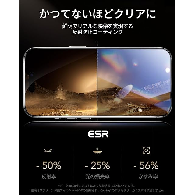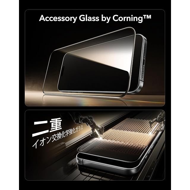 【3秒で完成・コーニング™社製】ESR ガラスフィルム iPhone 17 無印/iPhone 16 Pro 用 Corning™製強化ガラス 10倍強化保護 米軍MIL規格 3枚 AR加工 さらさら 気泡無し 指紋防止 自動除塵 ホコリフリー SGS認定品 2.5M鋼球落下テスト 高耐久 いphone17 無印/16pro保護フィルム 超簡単ガイド枠(UltraFitトレイ)付きコーニング保護フィルム
