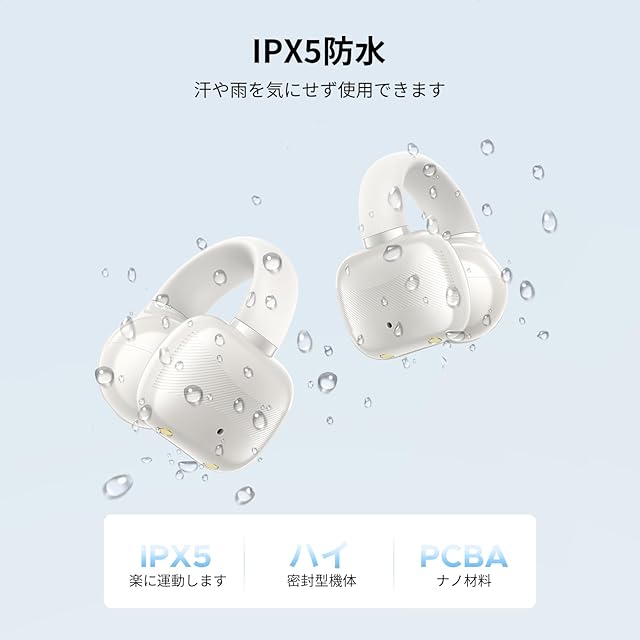 【わずか5.3グラム・耳をふさがない】カナル型の圧迫感も、骨伝導の振動もなし。空気伝導方式で、わずか5.3gという超軽量設計。長時間装着しても疲れにくく、運動中も快適です。IPX5防水対応で、汗や小雨でも安心。ジョギング・ランニング・ヨガ・フィットネス・サイクリングにも最適です。