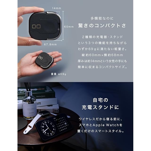 【フォルムチェンジで3in1】1日の様々なシーンにおいて、iPhoneに常に装着して持ち歩き、必要に応じて変形させて使うことができます。ワイヤレス充電スタンド+平置き型コンパクト充電器+スマートウォッチ充電器という3Wayでお使いいただけます。