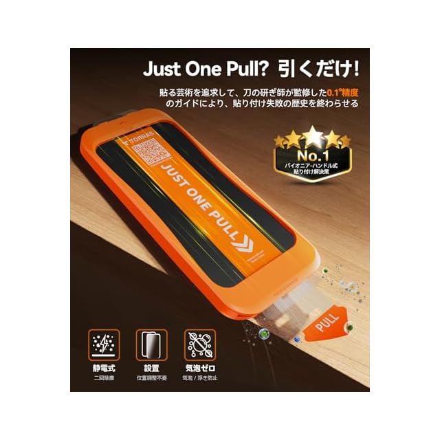 【TORRAS ピタ貼り・貼り失敗付き】2020年業界初登場から進化を続けるガイドフレーム最新世代。スマホ画面にフレームを設置→ハンドルを引く(1動作)だけで、職人技レベルの完璧な位置合わせを自動化。貼り付け失敗率を0.4%以下に抑制(自社実験室データ2024)。さらに、静電気を利用した除塵システムで、塵や気泡を瞬時に除去し、場所を選ばず誰でも完璧に貼れる仕様。貼り付け後は、まるでフィルムがないかのようなクリアな視認性と美しい仕上がりを実現。